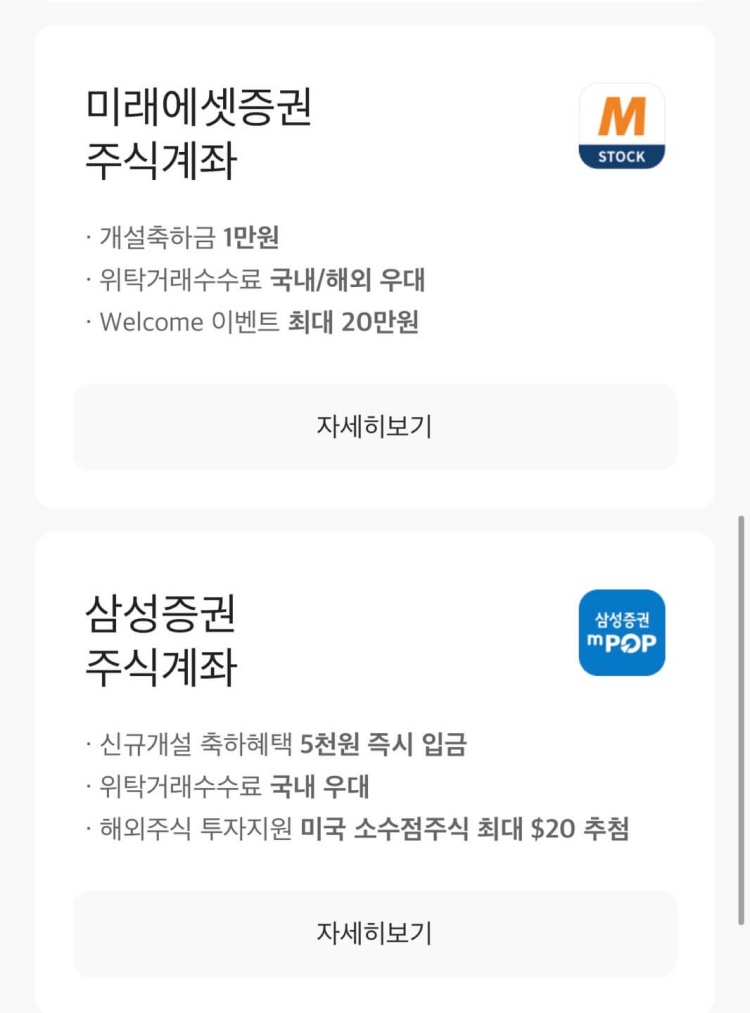 하지만 계좌개설 20일 제한으로 한 번에 제가 만들어야 하는 증권계좌를 만들지 못하게 되어 방안을 찾아보다가 20일 제한 없이 증권계좌를 만들 수 있는 방법을 알게 되었습니다.