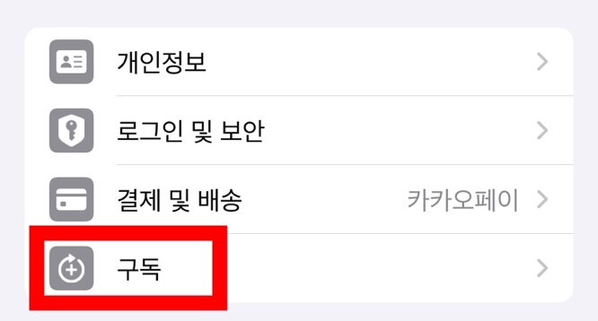 1. '설정'에 들어가서 계정을 클릭하고 본인이 구독하고 있는 내역에 들어갑니다.