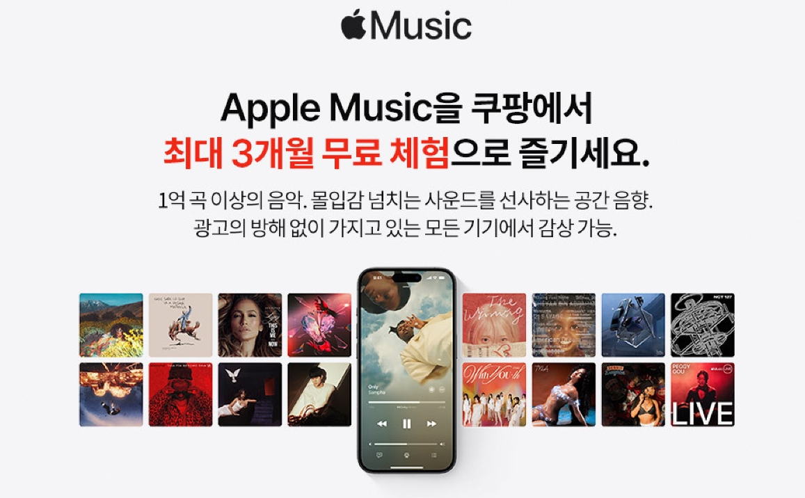 그러므로 Apple Music 신규 구독자 3개월 무료 혜택을 이용하신 분들도 쿠팡을 통해서 2개월 동안 추가로 더 이용하실 수 있습니다.