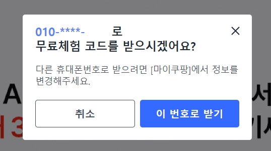 2. '무료체험 코드 받기'를 클릭하면 쿠팡 사이트로 들어갑니다.