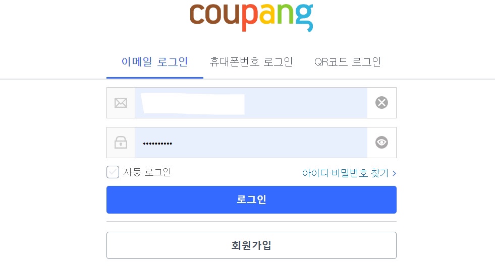 3. 쿠팡 아이디가 있으신 분들은 사용하시는 아이디로 로그인하시고 없으신 분들은 회원가입하여서 로그인 합니다.