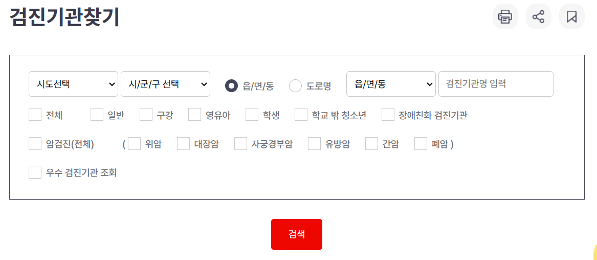 3. 검진기관 확인하기 : 검진기관 찾기를 클릭하면 내 주변 검진받을 수 있는 기관을 확인하실 수 있습니다.