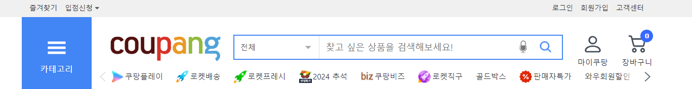 1. 쿠팡에 접속하여 로그인을 합니다. (모바일 이용시 앱 설치)