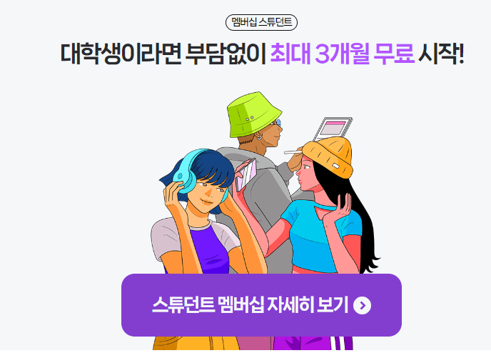 또한 대학(원)생이라면 스튜던트 멤버십으로 최대 3개월 무료 이용이 가능합니다!