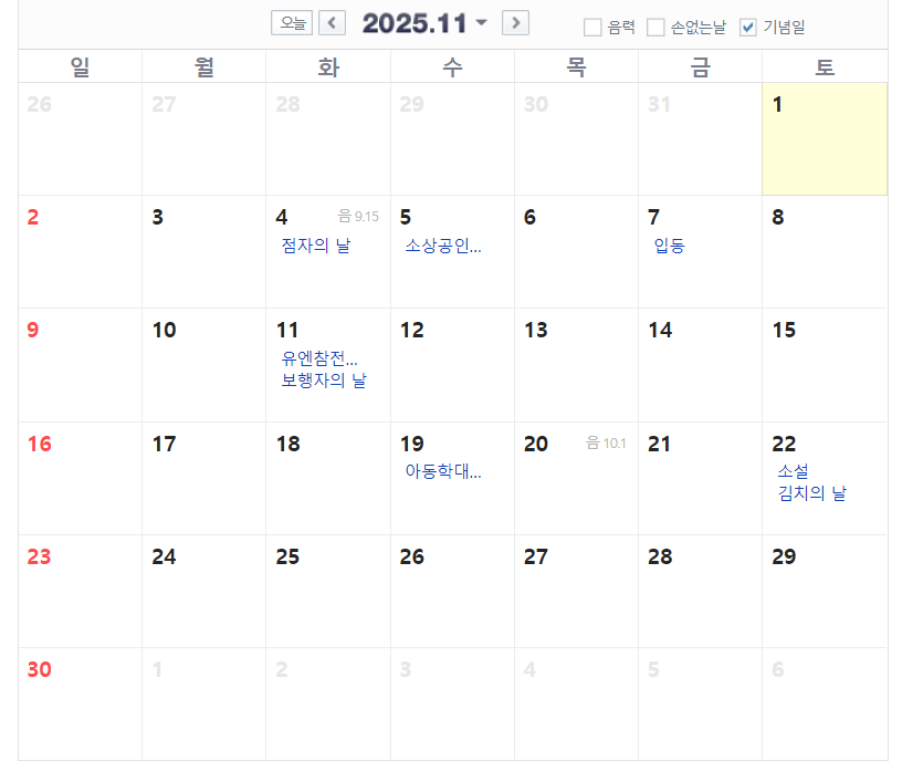 ▪️ 3월 1일 삼일절 (토)