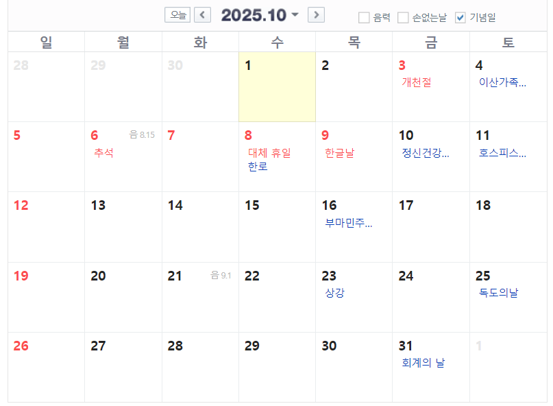 ▪️ 10/3 개천절